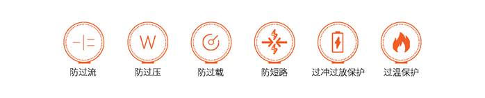 具有短路保護(hù)、過溫保護(hù)、過壓保護(hù)、過放保護(hù)、過沖過放保護(hù)、過載保護(hù)等多種保護(hù)機(jī)制。